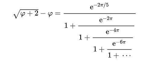 Cette question qui, je vous l'accorde, n'est pas très simple m'amène alors sur le sujet des fractions continues. Ce sont des objets mathématiques très curieux qui permettent de donner des approximations très fines des nombres irrationnels. Celle que j'ai illustrée ci-dessus donne par exemple une excellente approximation du nombre d'or (Pour en savoir plus sur la divine proportion, je t'invite à lire la lettre #15 : ICI)