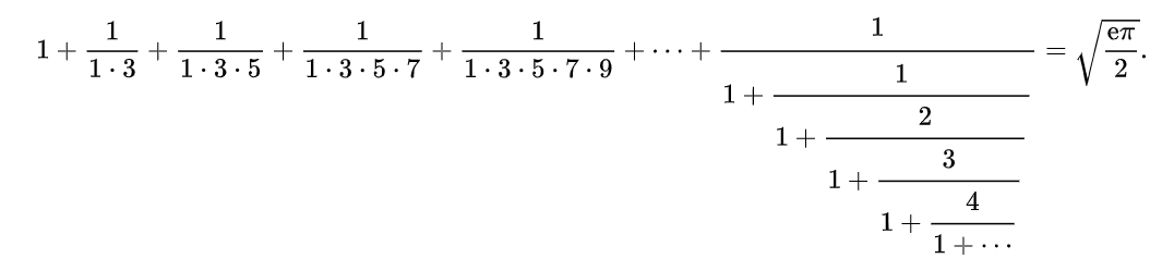 Ce nom est étroitement lié à la notion des fractions continues. Son ingéniosité et sa créativité dans ce domaine sont légendaires. Voici des exemples de calculs de fractions continues que Ramanujan propose :