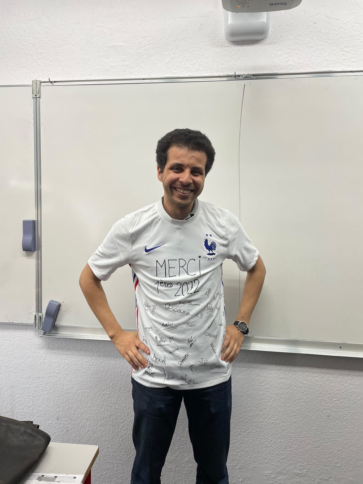 Après avoir été gâté par mes élèves de terminale la semaine dernière, c'est maintenant au tour de mes premières qui m'ont offert un Maillot de l'équipe de France très personnalisé. Je suis prêt pour la coupe du monde 😊