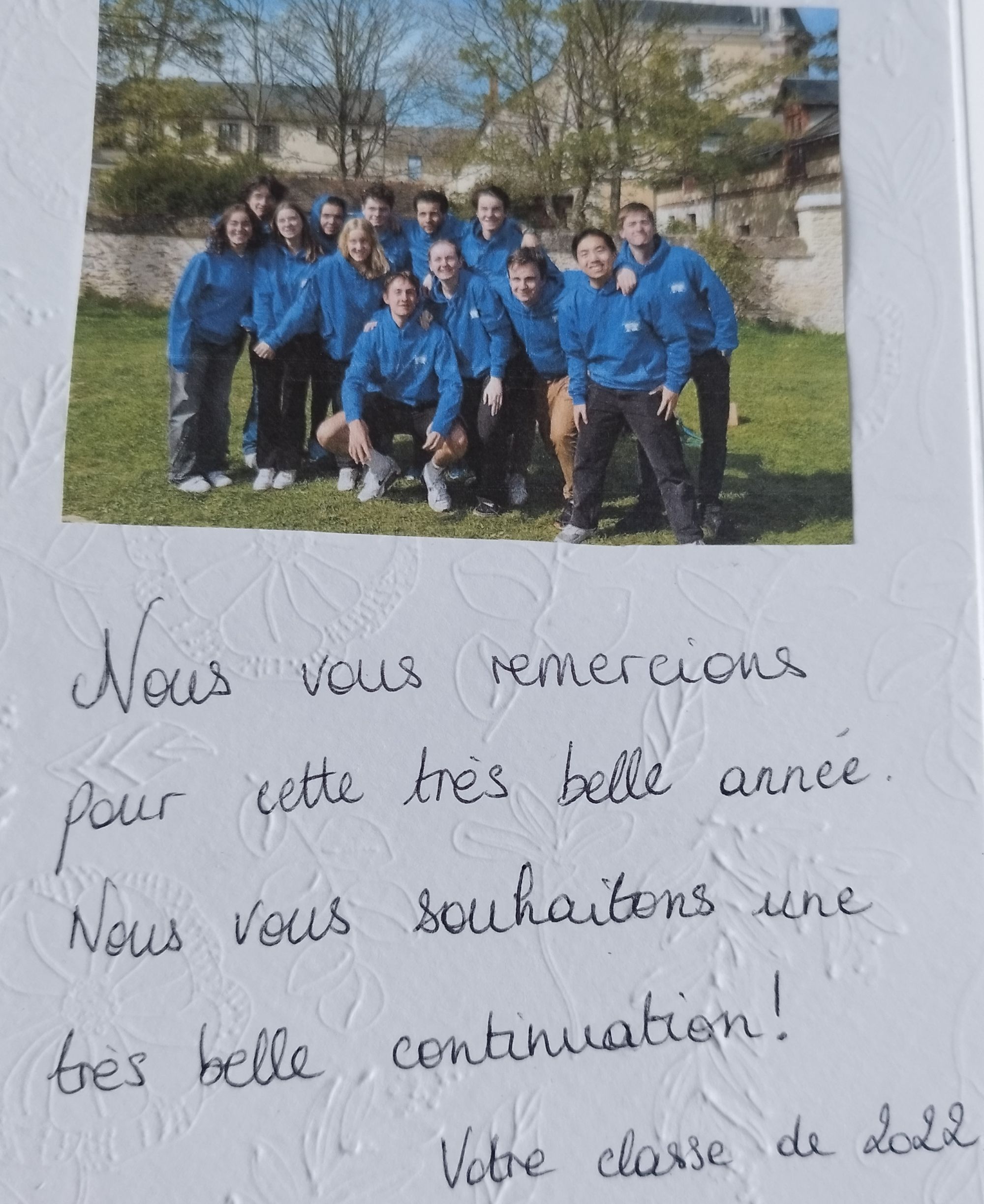 Cette semaine clôture mes cours de terminale pour l'année. Mes petits élèves ont eu la délicatesse de me préparer une petite carte de remerciement et cela m'a beaucoup touché !